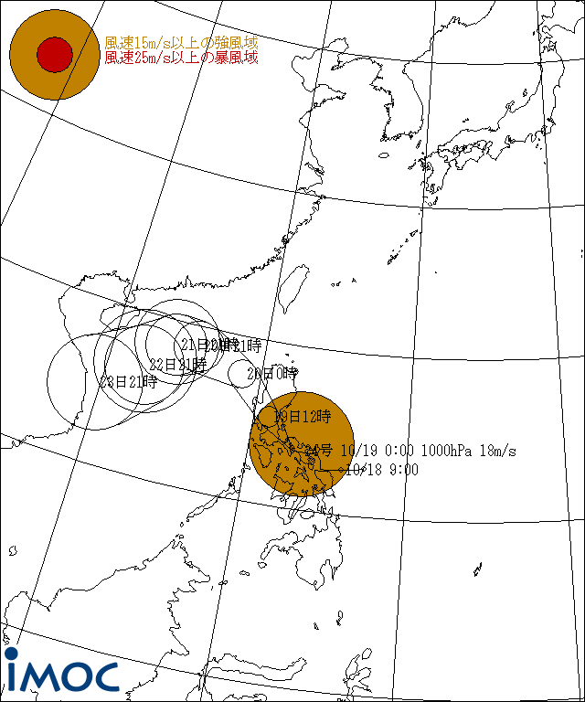 北緯15.1゜東経122.8゜ 北西 25 km/h