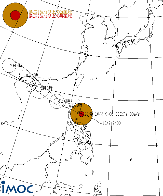 北緯21.3゜東経108.4゜ 西北西 20 km/h