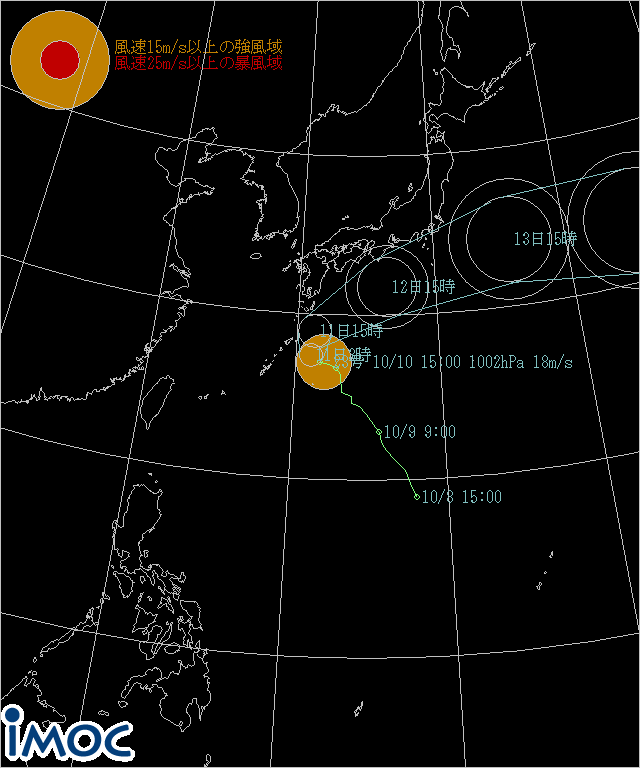 北緯28.4゜東経131.2゜ 北北西 10 km/h