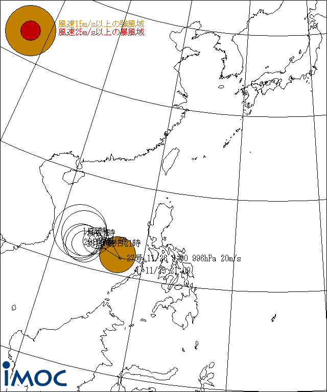 北緯11.8゜東経117.5゜ 西北西 25 km/h
